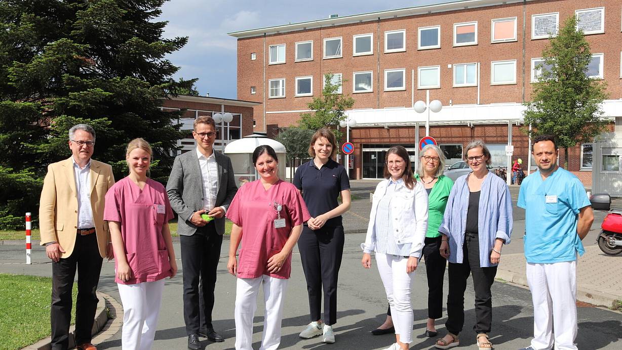 Josef Düllings (v.l.), Lena Steinbeck, Carsten Linnemann, Andrea Gebertshan, Emmi Zeulner, Pia Lages, Michaela Bremsteller, Kerstin Jessen und Wael Al Abssi | © Celina Allard
