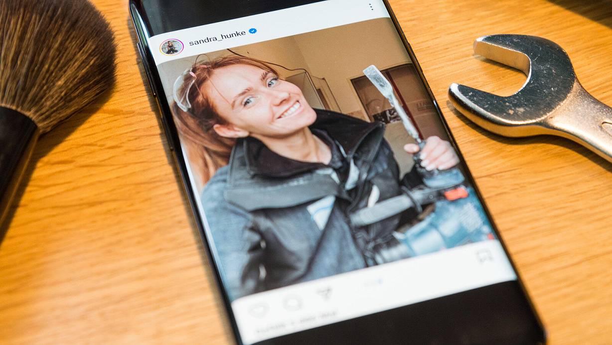 Werkzeug und Schminke: Im Leben von Handwerkerin und Model Sandra Hunke, die auch als Influencerin auf Instagram aktiv ist, ist das kein Widerspruch. | © Lena Henning
