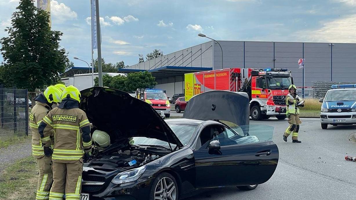 Die Feuerwehr Paderborn rückt zum Unfall am Balhorner Feld aus.