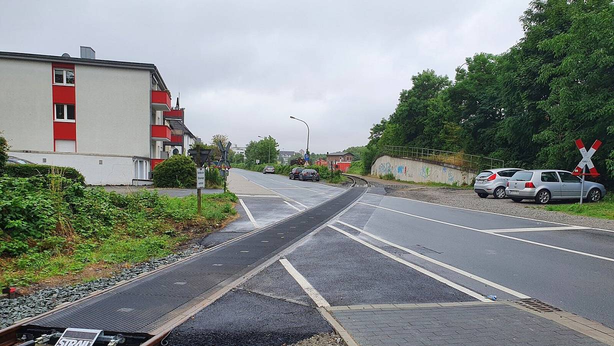 Nach Überprüfung mehrerer Alternativen, darunter die komplette Umlegung des Bahnübergangs, habe sich der Einbau von Velostrail-Platten als die vom Kosten/Nutzen-Verhältnis her sinnvollste Maßnahme erwiesen und sei daher umgesetzt worden. Dabei handele es sich um Bahnübergangsplatten, die einen fließenden Übergang ohne Stoßkanten erzeugten. Dies ermögliche vor allem den Radfahrenden durch die geschlossenen Spurrillen ein sicheres Überqueren der Schienen. Das System sei in Bielefeld und andernorts bereits erfolgreich im Einsatz.