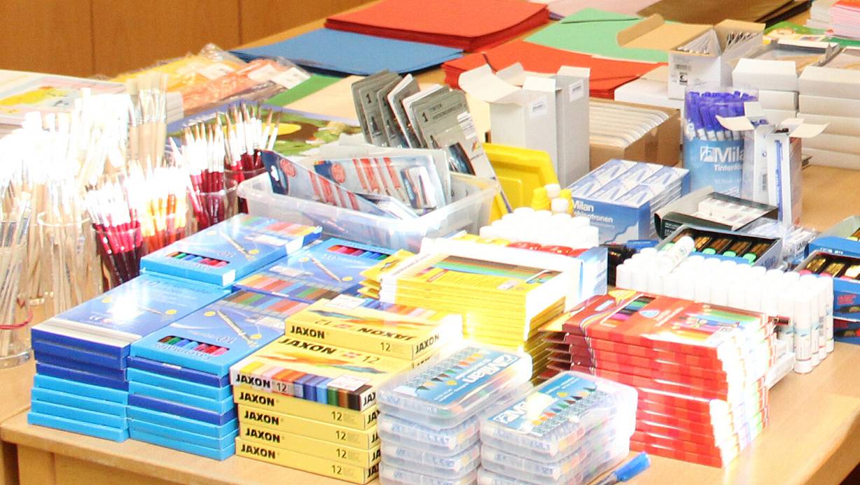 In der Schulmaterialienkammer in Paderborn können sich Kinder mit Schulbedarf von Heften über Stifte und Bastelmaterial eindecken. Die Einrichtung hat in diesem Jahr so viele Anmeldungen wie noch nie bekommen. | © Oliver Claes/Diakonie Paderborn-Höxter