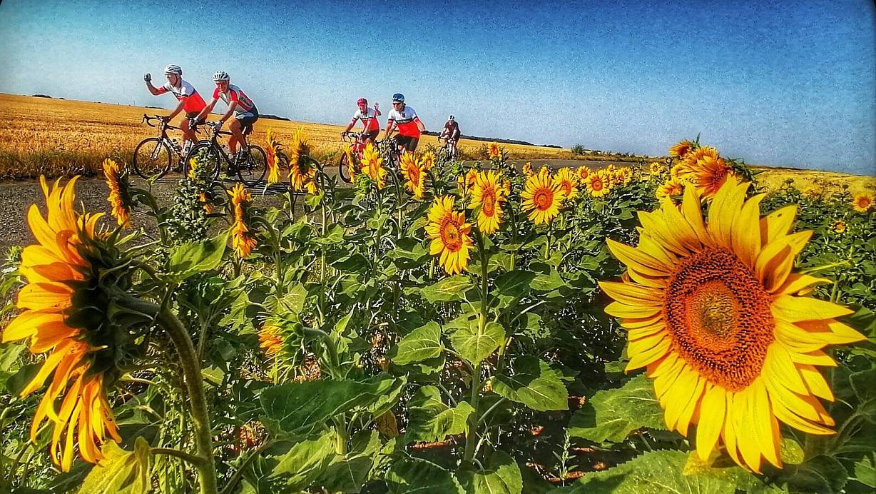 Auf ihrer Fahrt durch Frankreich kamen die Radsportler vom RMC Schloß Neuhaus auch an schier endlosen Sonnenblumenfeldern vorbei. | © Bernhard Dirkschnieder