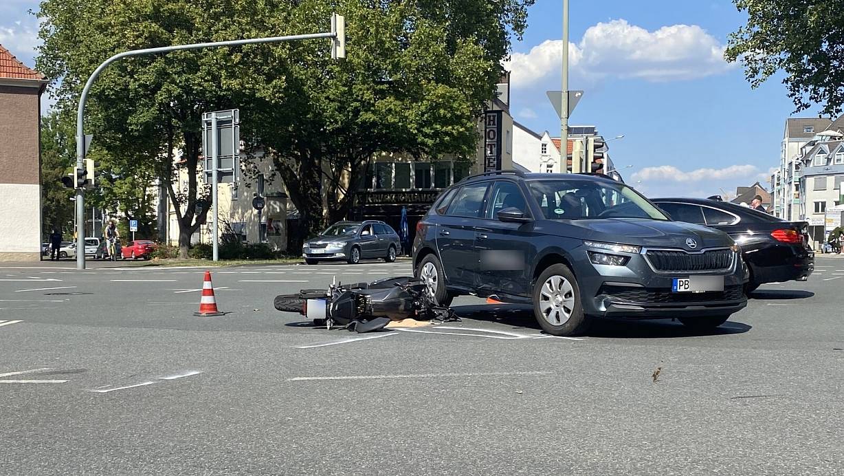 Eine 29-jährige Skoda-Fahrerin fuhr gegen 14.30 Uhr auf der Detmolder Straße stadteinwärts. Am Heierstor wollte sie nach links in den Gierswall abbiegen. Auf der Kreuzung ließ sie zunächst ein aus der Heiersstraße entgegenkommendes Auto durchfahren und bog dann ab. Dabei missachtete sie den Vorrang eines ebenfalls aus der Heiersstraße kommenden Motorradfahrers.