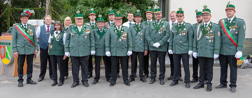 Paderborn-Sande. Diesmal gibt es einige Besonderheiten in der Schützengemeinde St. Hubertus Sande zu feiern. Natürlich stand fest, dass der Verein in diesem Jahr sein 100-jähriges Jubiläum hat. Im Laufe des Jahres kamen dann viele glückliche Ereignisse zusammen. So freut sich die Regenten Heinrich und Beate Rudolphi, dass ihr Sohn Marc ebenfalls die Königswürde erlangt hat und nun Jungschützenkönig ist.