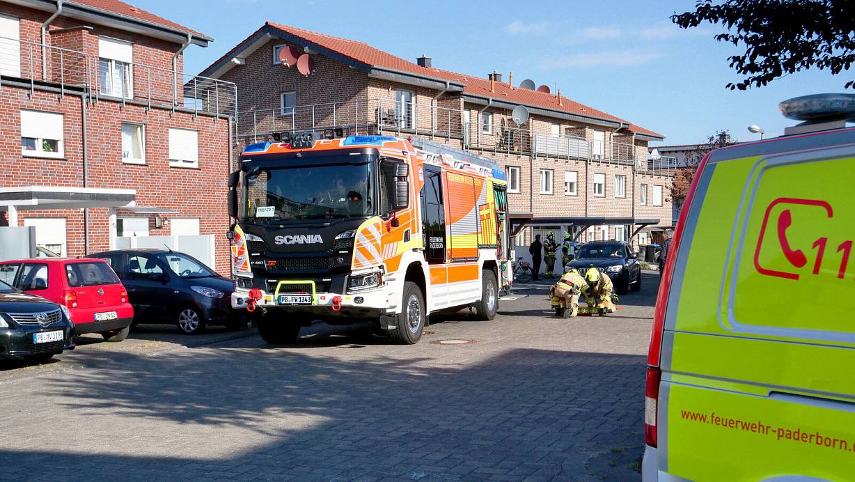 Paderborner Feuerwehr löscht brennende Rattanmöbel auf Balkon
