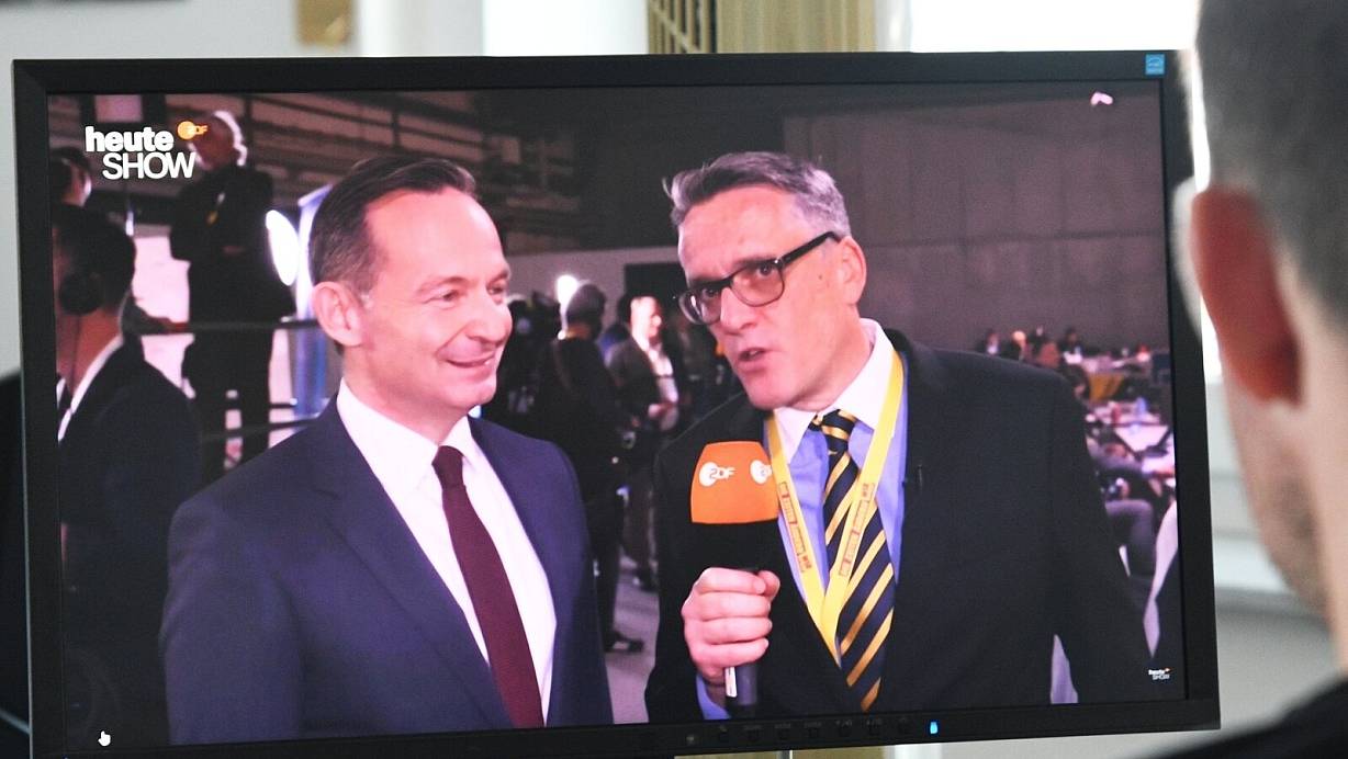 Auf dem Bundesparteitag der FDP interviewt Ralf Kabelka für die Heute-Show Ende April Volker Wissing, Minister für Digitales und Verkehr. | © Lena Henning