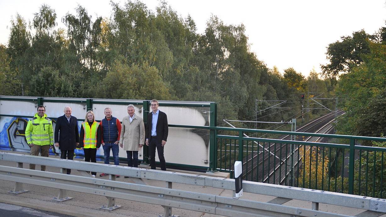 Das Bauwerk wurde saniert und die im Jahr 1980/91 gebaute und 1995 sanierte Brücke von unten neu beschichtet sowie Schadstellen im Beton behoben. Fahrbahn und Schutzplanken wurden auf einer Länge von rund 200 Metern vor und hinter der Brücke erneuert. Die Herausforderung bei diesen Arbeiten: In der vierwöchigen Sperrzeit der Deutschen Bahn mussten alle Arbeiten im Gleisbereich und Nahe der Oberleitung abgeschlossen sein. Die vom Kreis beauftragte Baufirma arbeitete daher teilweise zwölf Stunden am Tag und sechs Tage in der Woche, um die Maßnahme fristgerecht zu beenden. Zudem wurde für mehr Sicherheit für Rad- und Fußgänger der bestehende Radweg auf drei Meter verbreitet. Bislang hatte er nur eine Breite von 1,80 Meter. So war die Brücke das Nadelöhr der gesamten Radwegwegverbindung.
