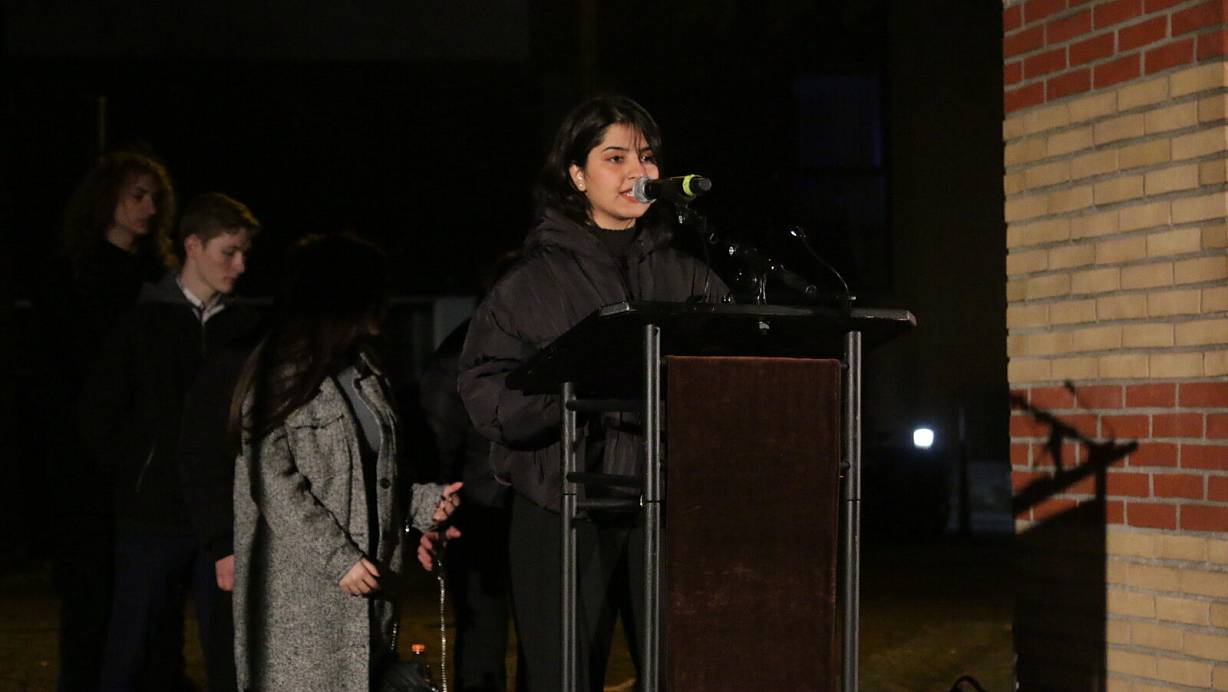 Mursal Wardak verliest die Namen der getöteten Paderborner Jüdinnen und Juden am Platz der Alten Synagoge | © Jessica Eberle