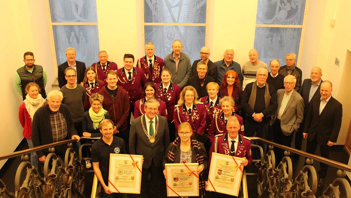 Insgesamt drei Vereine freuen sich im historischen Rathaus Paderborn über den Heimatpreis. Auch die finanzielle Unterstützung ist für die Mitglieder nach den Pandemie-Jahren dringend nötig. | © Moritz Jülich