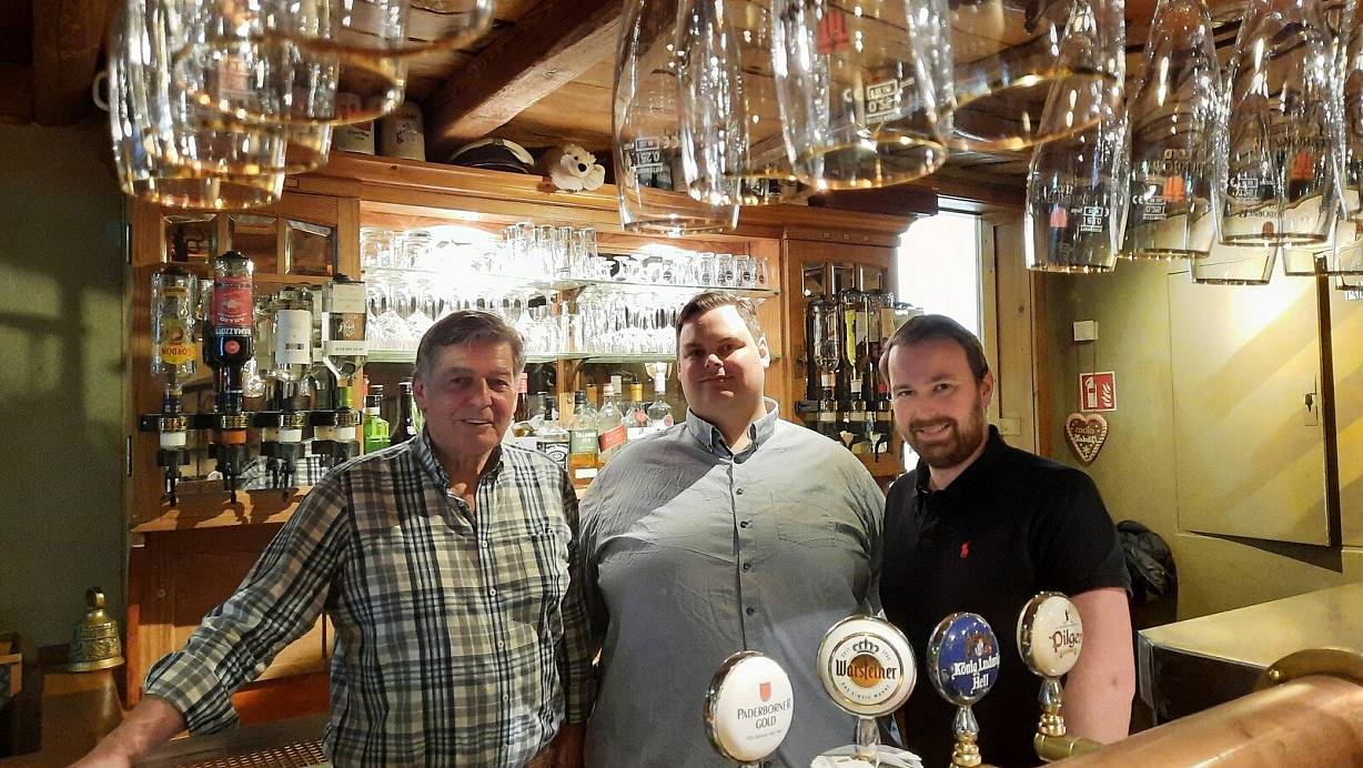 Michael Löhr (l) und Patrick Luther (r) geben das Gasthaus Ausspann an der Kasseler Straße in die Hände ihres bisherigen Kochs Alexander Varchim. | © Marc Schröder