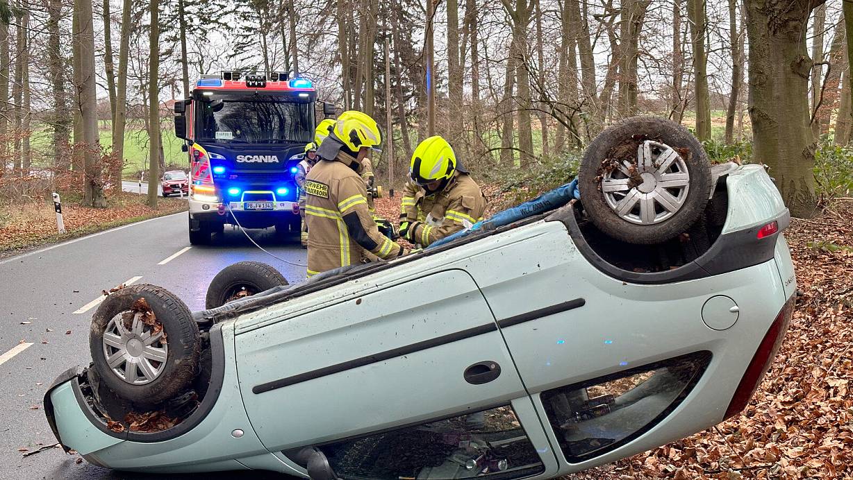 Unfall in Paderborn: 21-Jähriger landet mit Corsa auf dem Dach