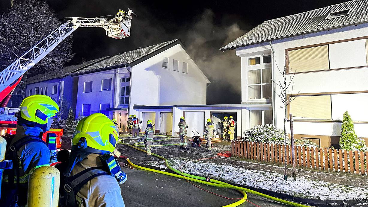 Rund 45 berufliche und ehrenamtliche Feuerwehrleute verhinderten am Pionierweg auf ein Übergreifen der Flammen vom Gartenhaus auf die Garagen zwischen den Wohngebäuden. | © Ralph Meyer
