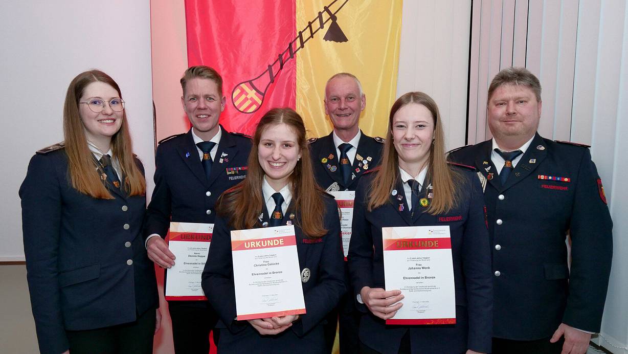 Jubilarehrung (v. l.): Sabrina Kruse, Dennis Happe, Christina Golücke, Jochen Riese, Johanna Wenk und Andreas Kotzur. | © Ralph Meyer