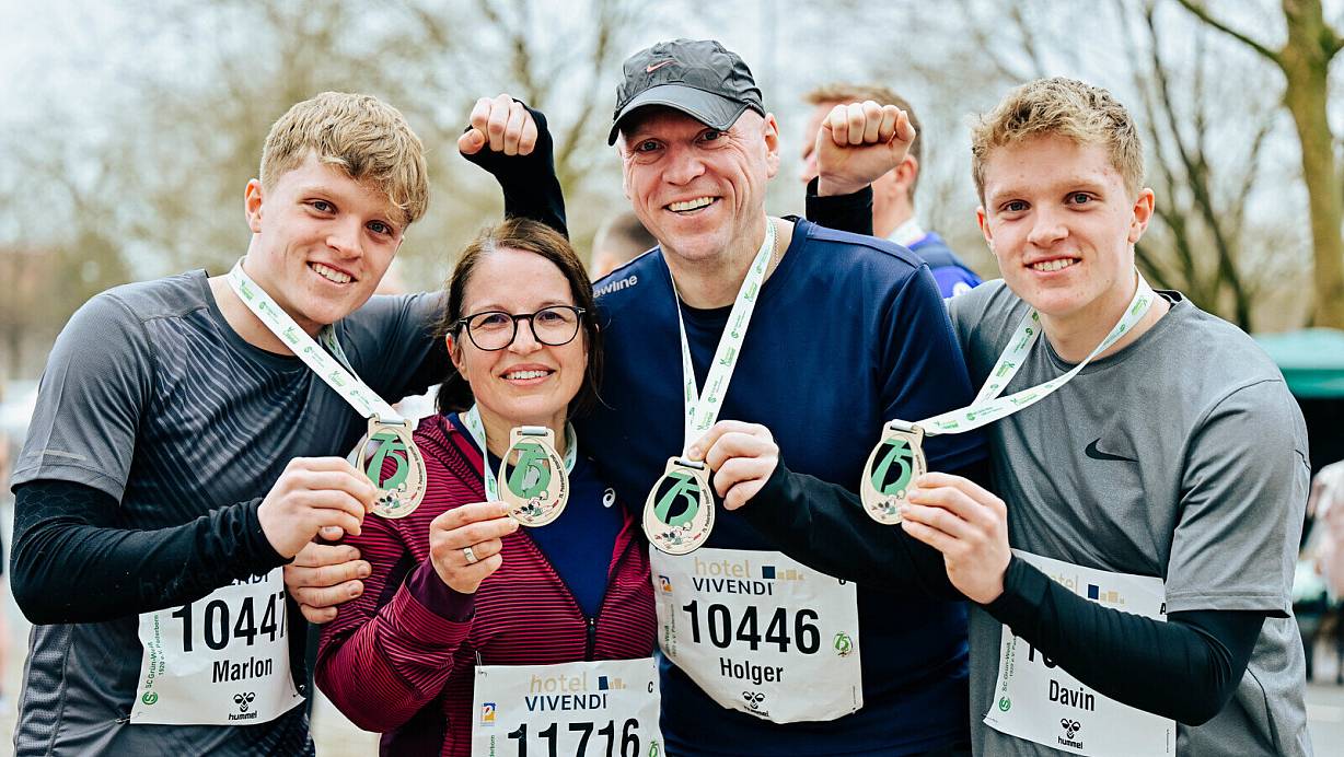 Für Familie Thiemann ist die Teilnahme am Osterlauf etwas ganz Besonderes. Nach der Krebsdiagnose ist Vater Holger Thiemann wieder fit, um mit seiner Frau Petra Hönisch und den Söhnen Marlon und Davin Thiemann den 10-Kilometer-Lauf zu bestreiten. | © BESIM MAZHIQI