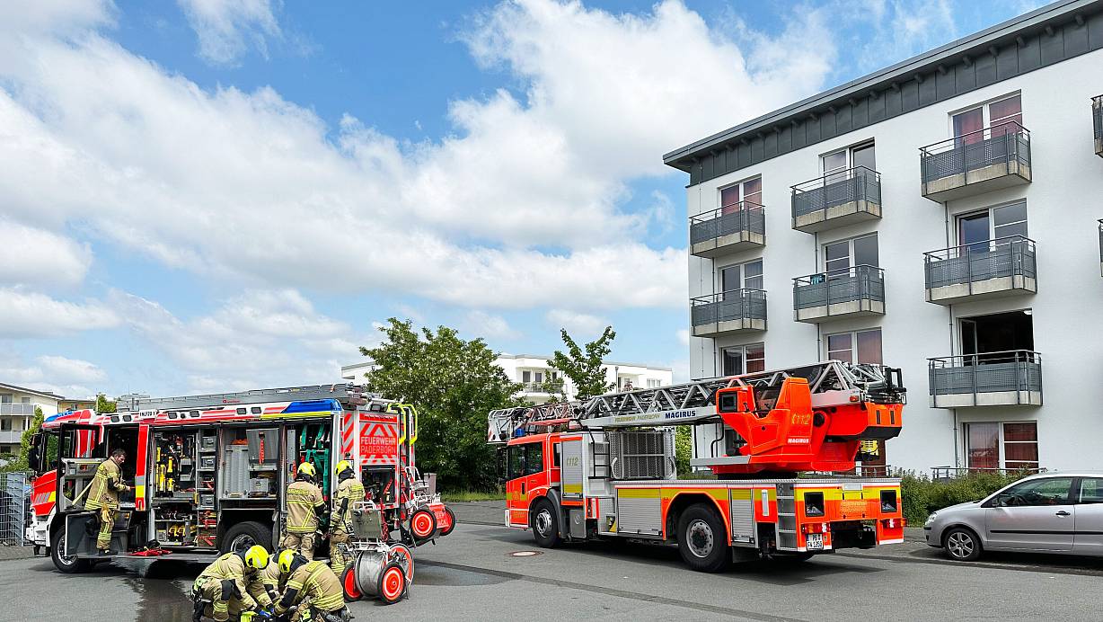 30 Einsatzkräfte der Paderborner Feuerwehr rücken zu einer gemeldeten Rauchentwicklung in einem Wohnheim für Studierende am Mersinweg im Süden der Stadt aus.