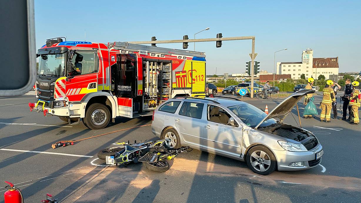 Beim Zusammenstoß eines Motorrades mit einem vollbesetzten Skoda Kombi werden drei Personen verletzt. | © Ralph Meyer
