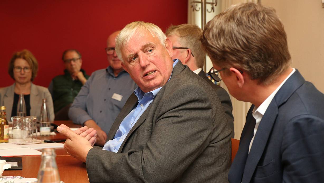 NRW-Gesundheitsminister Karl-Josef Laumann spricht auf Einladung von CDU-Politiker Carsten Linnemann mit Pflegemitarbeitern über die Zukunft der Branche. | © Mareike Gröneweg