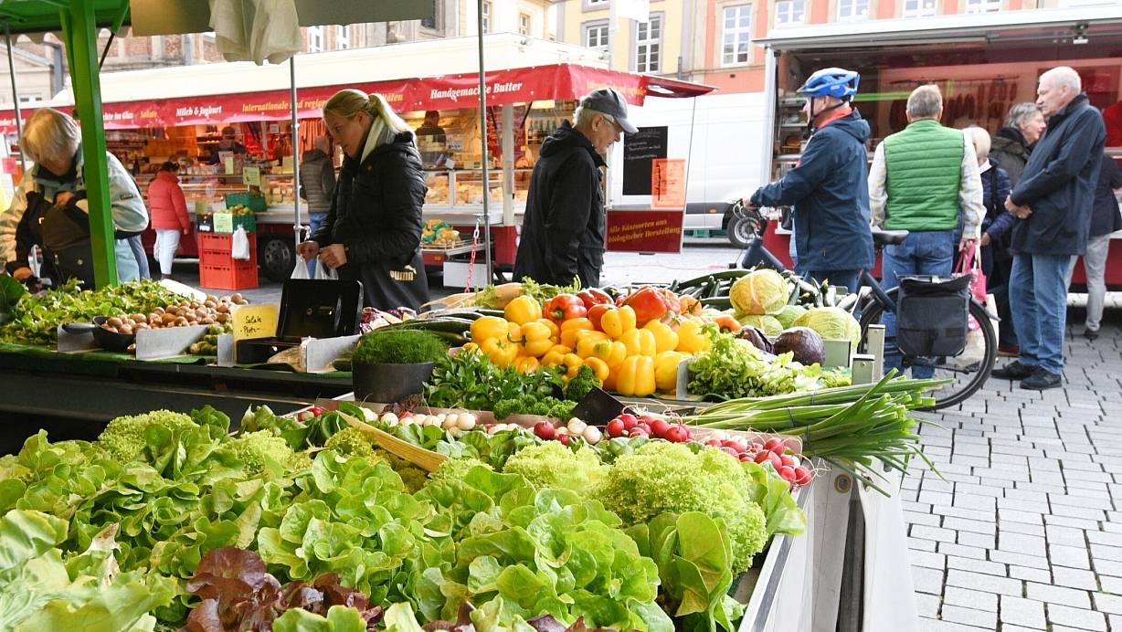 Frisches Obst und Gemüse: Der Paderborner Wochenmarkt lockt mit regionalen Produkten - zu Libori in diesem Jahr aber nicht. | © Lena Henning (Archivbild)