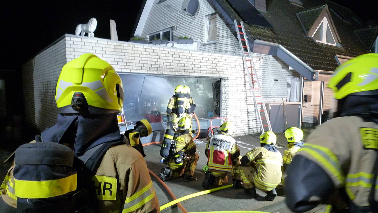 Als die Feuerwehrleute am Einsatzort eintrafen, quoll bereits dichter Rauch aus dem verschlossenen Tor einer Garage. Auch am Garagendach waren Flammen sichtbar, heißt es im Einsatzbericht der Feuerwehr. Die Feuerleute erkundeten das angrenzende Wohnhaus und stellten fest, dass es auch im Bereich der Küche bereits nach Rauch roch. Die Bewohner der Doppelhaushälfte hatten das Gebäude schon verlassen.