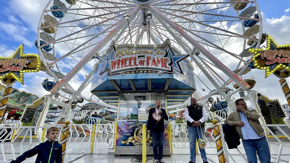 Der stellvertretende Bürgermeister Dieter Honervogt hat pünktlich um 16 Uhr am Riesenrad Herbstlibori und somit das bunte Kirmestreiben eröffnet. | © Carola Drabon
