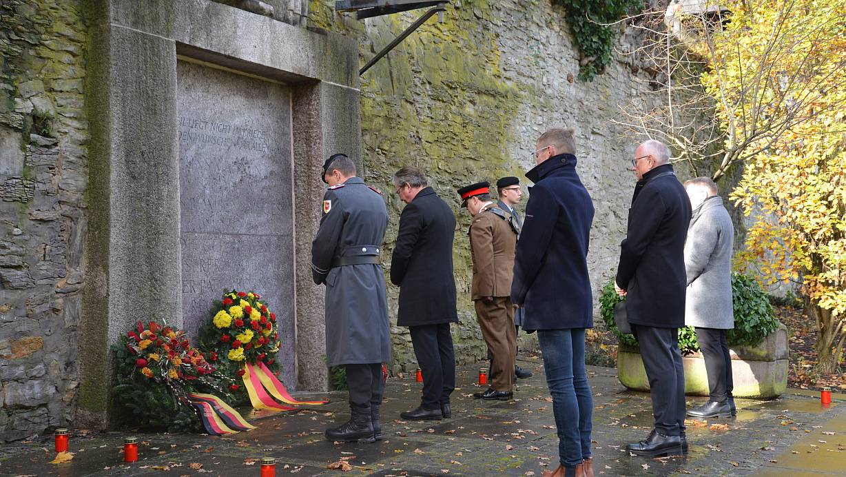 Paderborn. Zur Erinnerung an die Millionen Opfer von Krieg, Terror und Gewaltherrschaft fand am Volkstrauertag die traditionelle Gedenkstunde am Busdorfwall statt. „Der Volkstrauertag ist ein Tag des Erinnerns und des Gedenkens“, erklärte Bürgermeister Michael Dreier in seiner Begrüßungsrede.