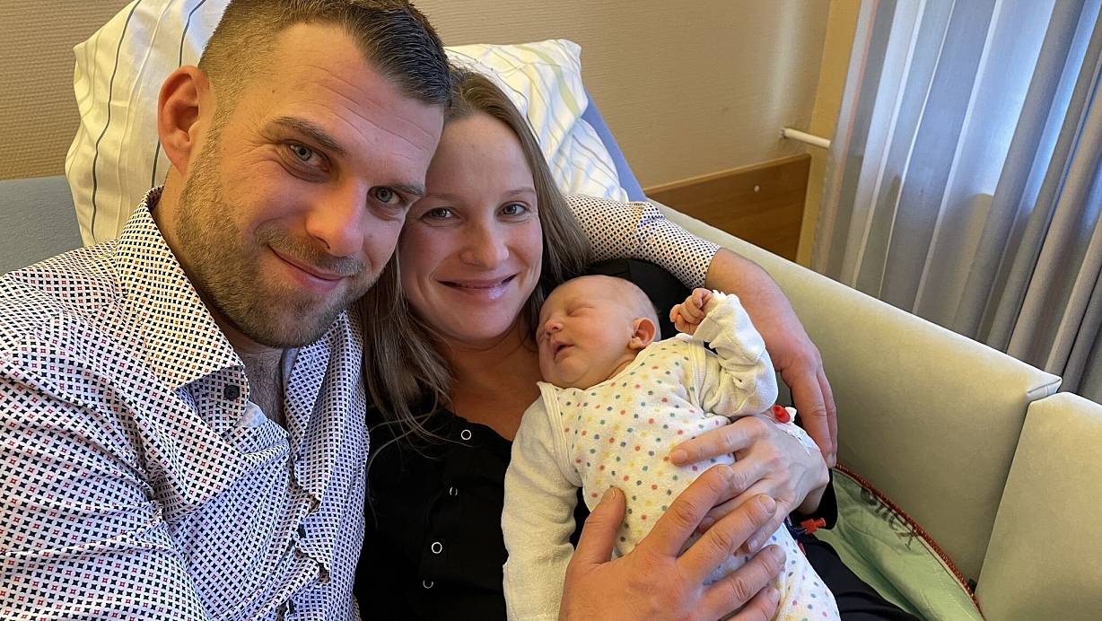Das Neujahrsbaby in der Kinderklinik St. Louise heißt Mia Holovchenko, hier gemeinsam mit ihren Eltern Nico-André Glanz und Olesia Holovchenko. | © St.-Vincenz-Kliniken