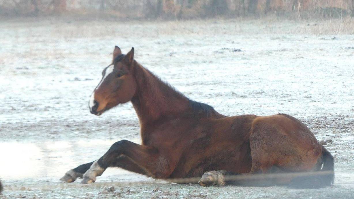 Bei Westerwiehe kann ein Pferd durch eingefrorene Böden nicht mehr aufstehen. Eine Tierärztin sieht das Pferd durch Zufall und bittet Polizei und Veterinäramt um Hilfe. Doch die schicken sie weg, wie sie sagt.