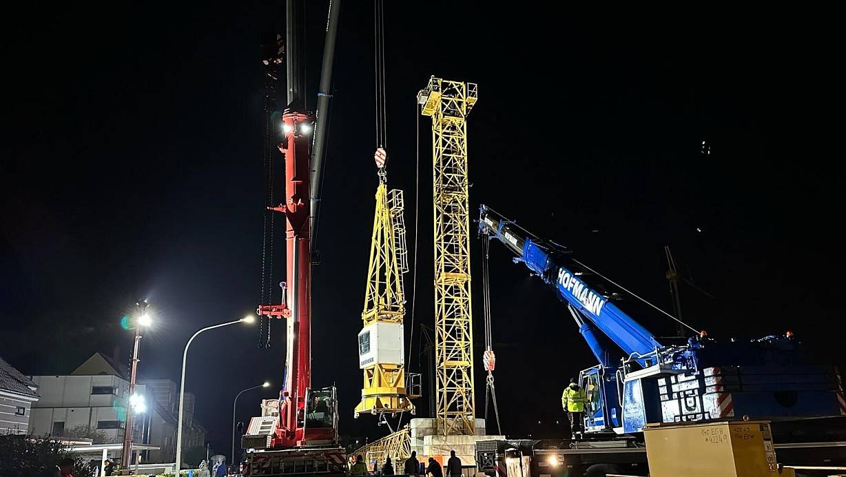 Die Baufirma bemerkt den unsicheren Stand eines Baukrans am Freitagmittag. Die Anwohner wurden zwischenzeitlich in einem Großraum-Bus der Feuerwehr untergebracht.