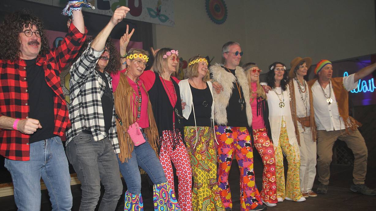 Viele Akteure und Besucher lassen beim Karneval in der Wewelsburger Dorfhalle die Mode der vergangenen Jahrzehnte Revue passieren - so auch die Flower-Power-Zeit. | © Johannes Büttner