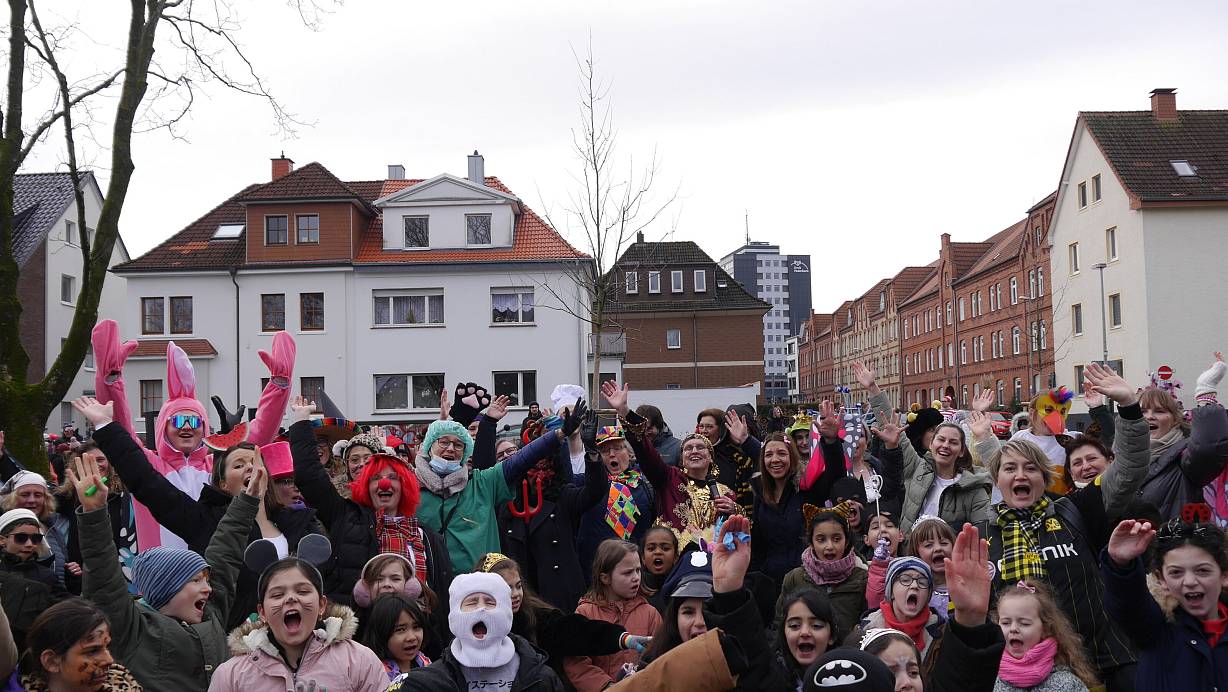 Hunderte Kinder bringen Karneval zurück in das Riemekeviertel. Zwar ist der Umzug kleiner als zuletzt 2020, die Stimmung deshalb aber nicht weniger ausgelassen.