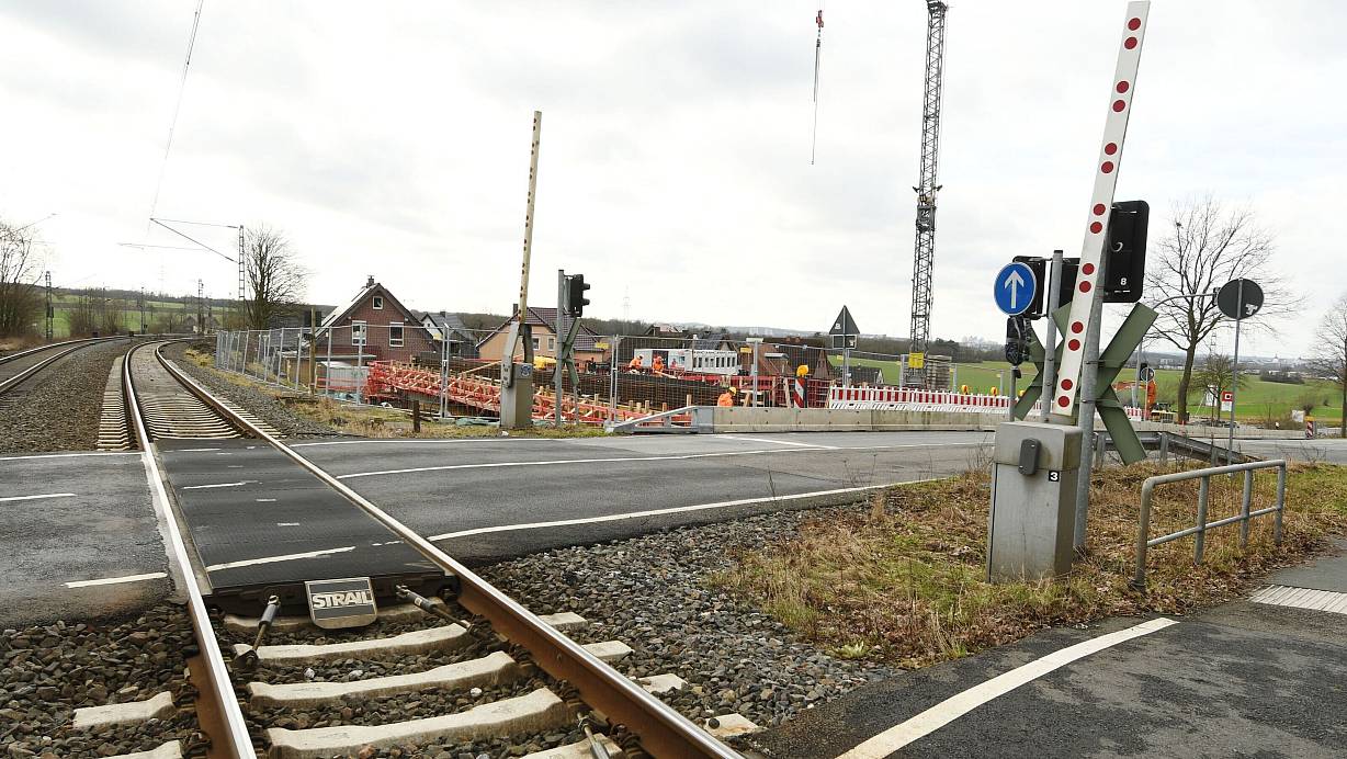 An der Eggestraße (L755) bei Paderborn-Benhausen wird der Bahnübergang durch eine Unterführung ersetzt. Die Arbeiten laufen seit September, jetzt steht eine Sperrung an. | © Lena Henning