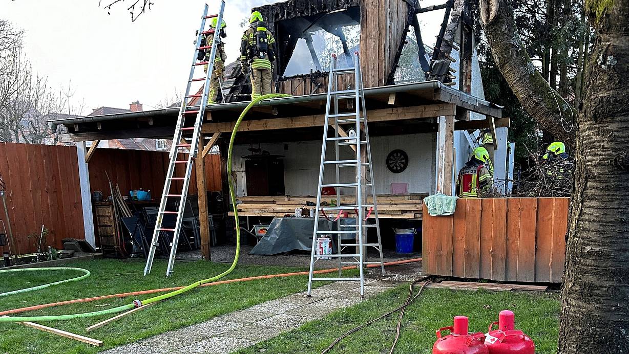 Beim Eintreffen stellte sich heraus, dass der Dachstuhl einer Gartenhütte bereits im Vollbrand stand. Da sich keine Personen mehr im unmittelbaren Gefahrenbereich befanden, konnte sich die Feuerwehr ihrem Bericht zufolge auf die Brandbekämpfung konzentrieren. „Durch den schnellen Einsatz konnte das Feuer zügig unter Kontrolle gebracht werden“, teilt Einsatzleiter Brandamtmann Sergij Rabino mit. Die Tragstruktur des Gebäudes habe weitestgehend erhalten bleiben können.
