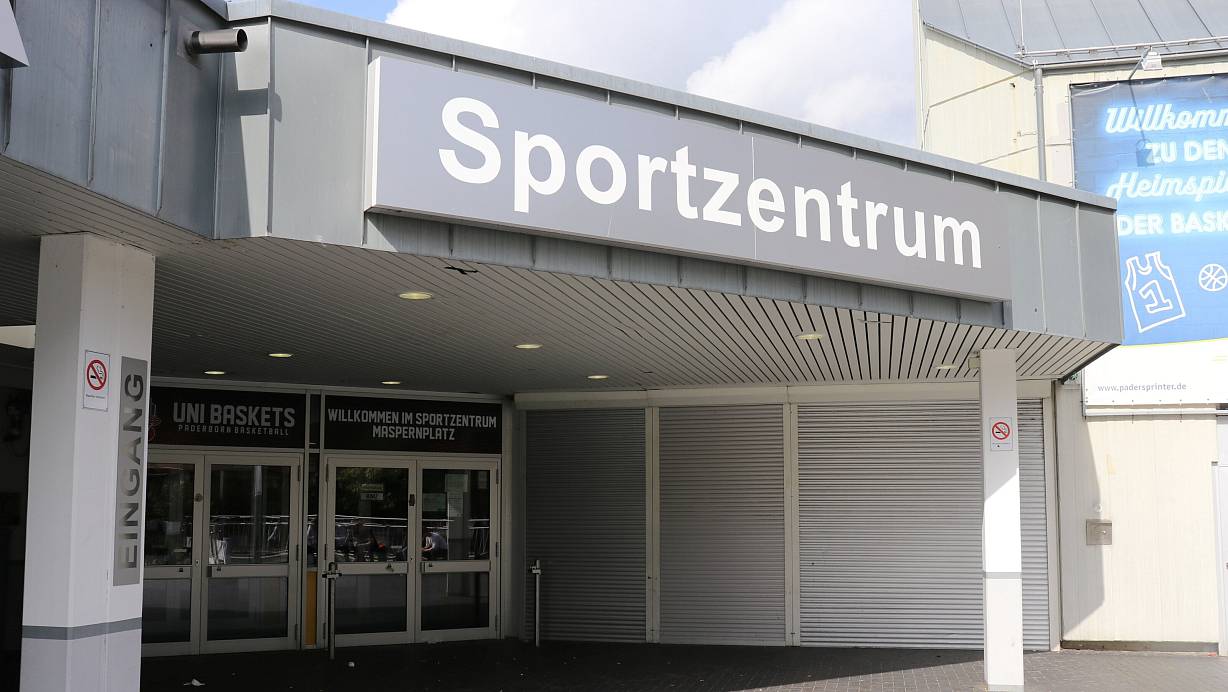 Die Zukunft des sanierungsbedürftigen Sportzentrums Maspernplatz ist ungewiss. Ungeklärt ist zudem beispielsweise, ob und wo es ein Ausweichquartier für die die Spiele der Paderborn Baskets geben könnte. | © Mareike Gröneweg