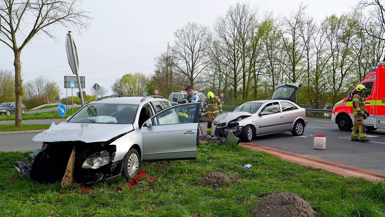Ein Opel-Fahrer übersieht auf der Warburger Straße einen VW Variant, der in Richtung Paderborn unterwegs ist.