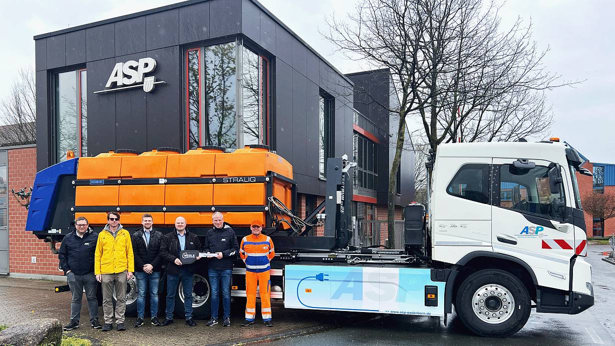 Auch deshalb fährt seit kurzem ein Hakenliftfahrzeug, das rein elektrisch betrieben wird, Touren in Paderborn. Der Pkw-Fuhrpark des ASP ist bereits zu 90 Prozent auf elektroangetriebene Autos umgestellt. Auch der Anteil der Kehrmaschinen (20 Prozent mit Elektroantrieb) steigt stetig. Für die großen dieselbetriebenen Lkws fehlte bislang noch eine gleichwertige und umweltfreundliche Alternative. Der Volvo FMX Electric, der neu in der Flotte des ASP ist, kann eine solche Alternative sein. Er kann einen Dieselabrollkipper gleichwertig und emissionsarm ersetzen.