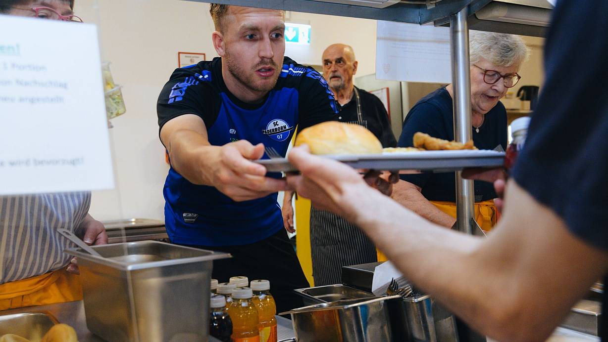 Paderborn. Es war kein alltägliches Mittagessen im Paderborner Gasthaus Padermahlzeit: Mit Filip Bilbija und Pelle Boevink unterstützten zwei Profifußballer des SC Paderborn 07 die Ehrenamtlichen bei der Essensausgabe für bedürftige Menschen, wie das Erzbistum Paderborn in einer Pressemitteilung mitteilte.
