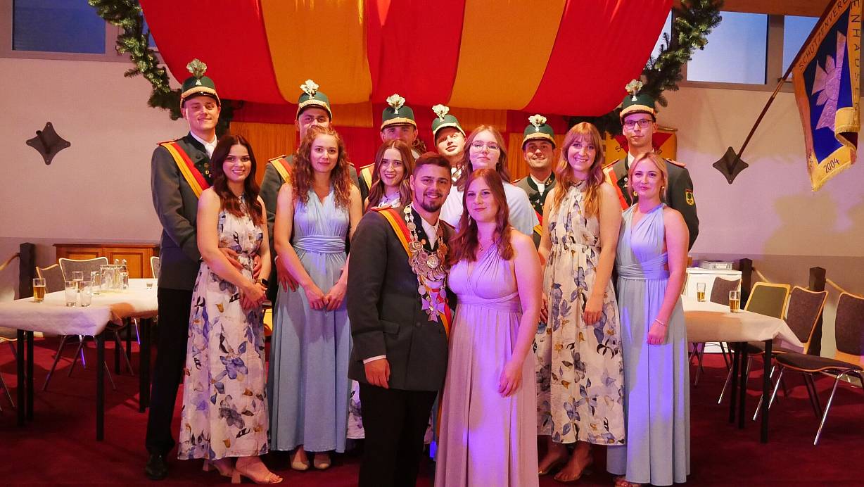 Den Hofstaat bilden Lars Kröger (Königsoffizier) mit Rabea Hanke, René Noll (Königsoffizier) mit Hannah Bartels, Marian und Janine Schäfers, Timo Heidloff mit Alica Stuke, Florian Stenzel und Sabrina Andrecht sowie Tim Rüsing mit Hanna Kersting, wie der Schützenverein Benhausen mitteilte.