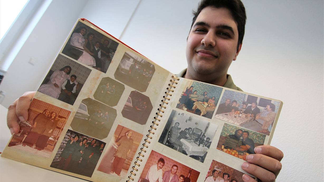 Der Paderborner Grünen-Ratsherr Güven Erkurt zeigt ein Album mit Fotos seiner Großeltern. | © Rajkumar Mukherjee