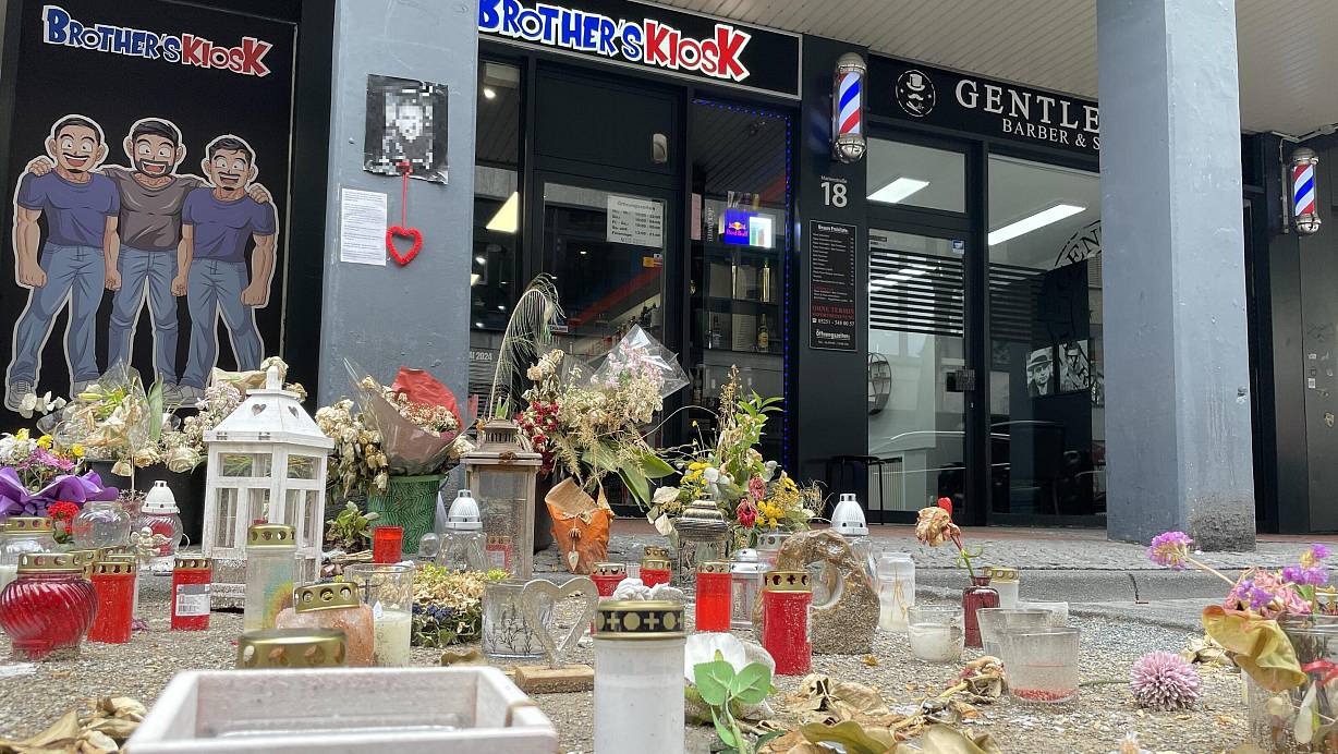 An der Marienstraße sind weiterhin Zeichen der Trauer und Anteilnahme zu sehen. Auch der „Brother’s Kiosk“ hat zum Schutz einen Sicherheitsdienst beauftragt. | © Rajkumar Mukherjee