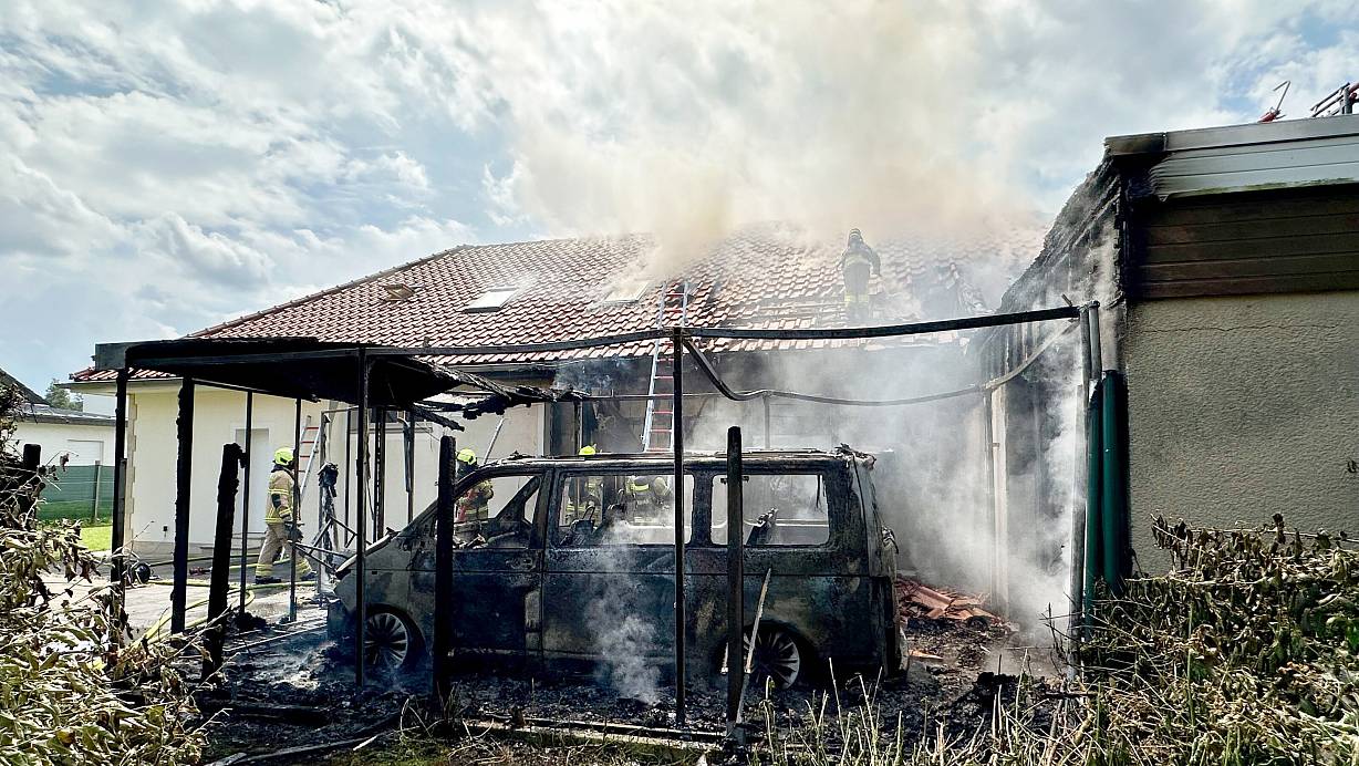 Zunächst steht ein Carport in Flammen, in dem ein Kleinbus komplett ausbrennt. Dann brennt auch das angrenzende Einfamilienhaus. Mittlerweile ist die Brandursache ermittelt und die Schadenshöhe beziffert.