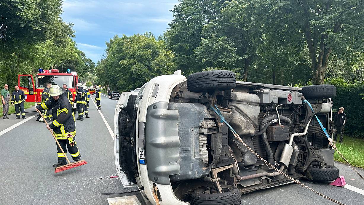Eine 24-jährige Opel-Fahrerin wird verletzt. Feuerwehrleute aus Kleinenberg, Lichtenau und Holtheim rücken aus.