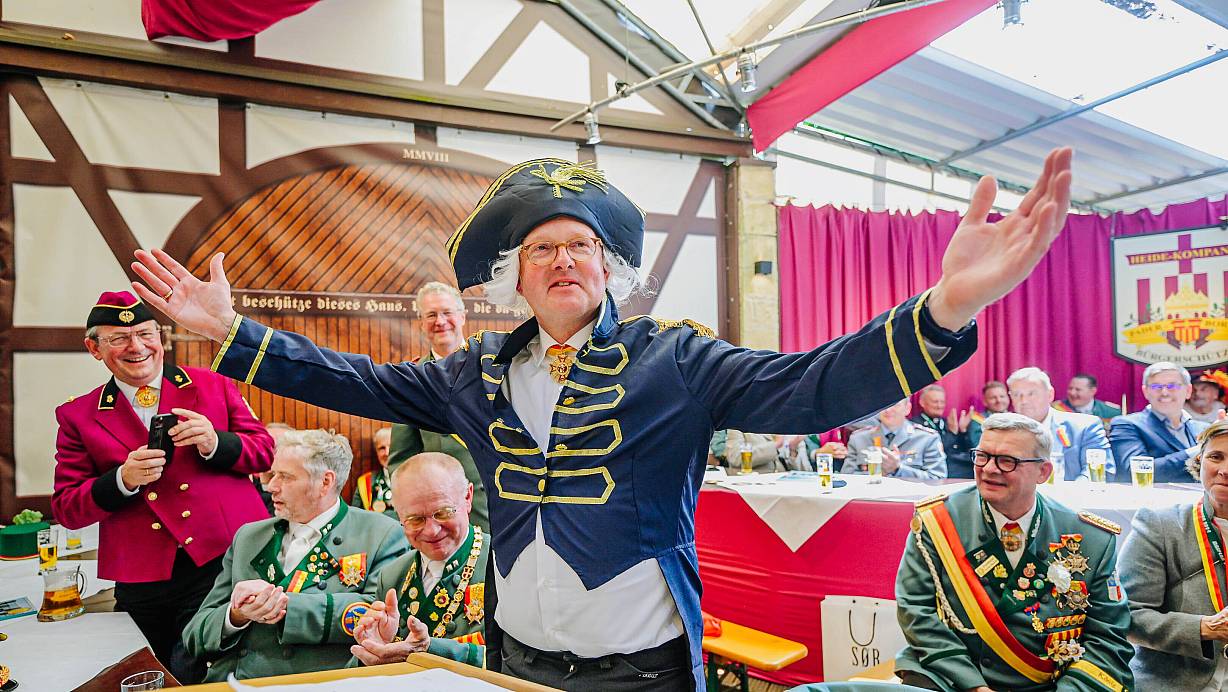 Himmelfahrtskommando und Götterdämmerung: Viele nicht ganz ernst gemeinte Ernennungen, zahlreiche Uniformwechsel und Abschiede bestimmen das Schützenfrühstück am Schützenfest-Montag in Paderborn.