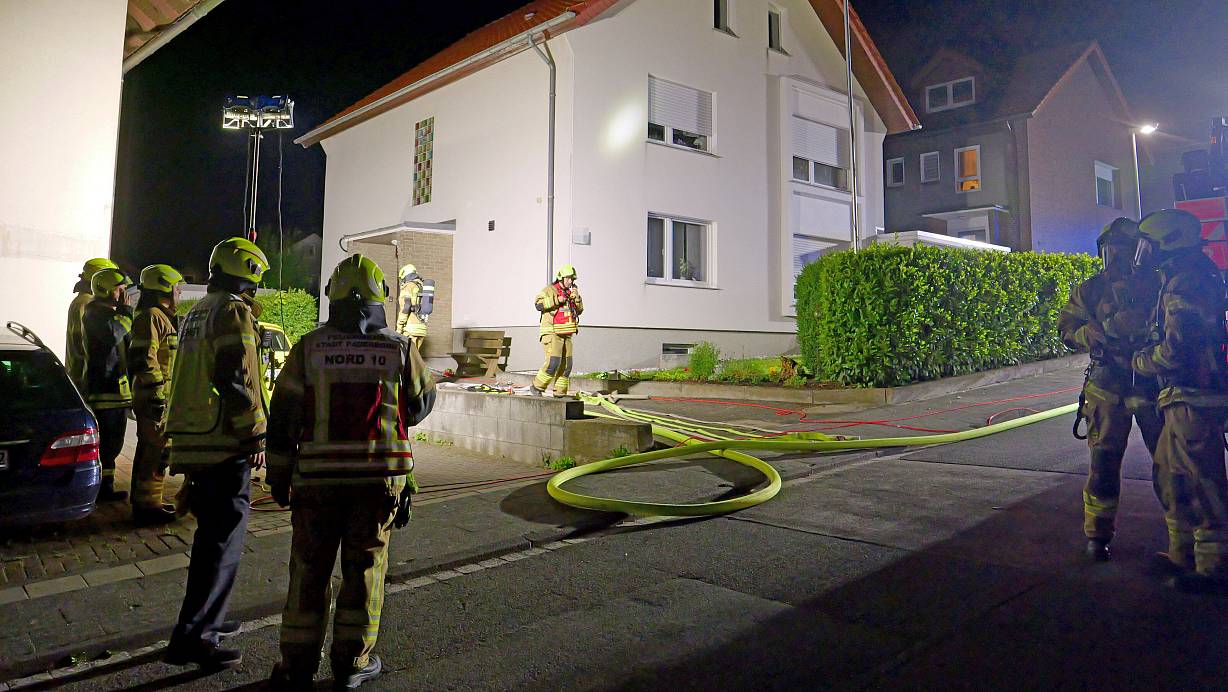 Rund 30 Feuerwehrleute löschten am späten Samstagabend einen Kellerbrand in einem Zweifamilienhaus am Stubenweg im Paderborner Stadtteil Dahl. | © Ralph Meyer