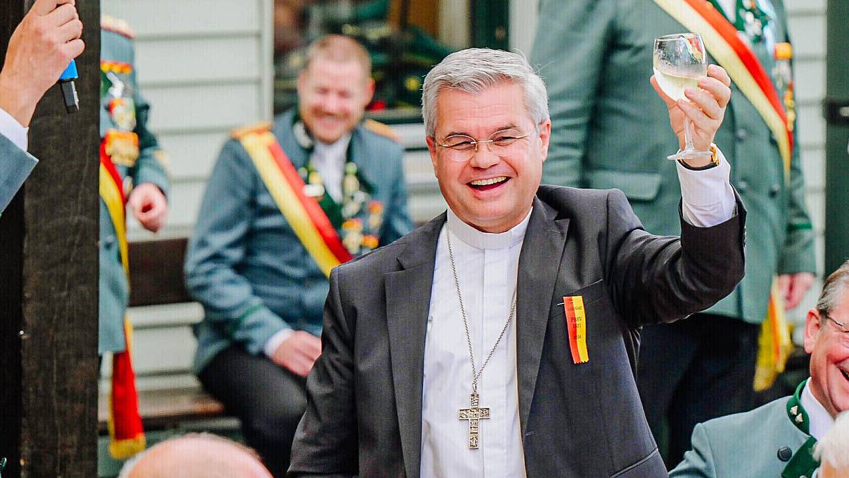 Bei seiner Schützenfest-Premiere in Paderborn hatte Erzbischof Udo Markus Bentz, der überall mit viel Applaus empfangen wurde, sichtlich Spaß. | © Besim Mazhiqi