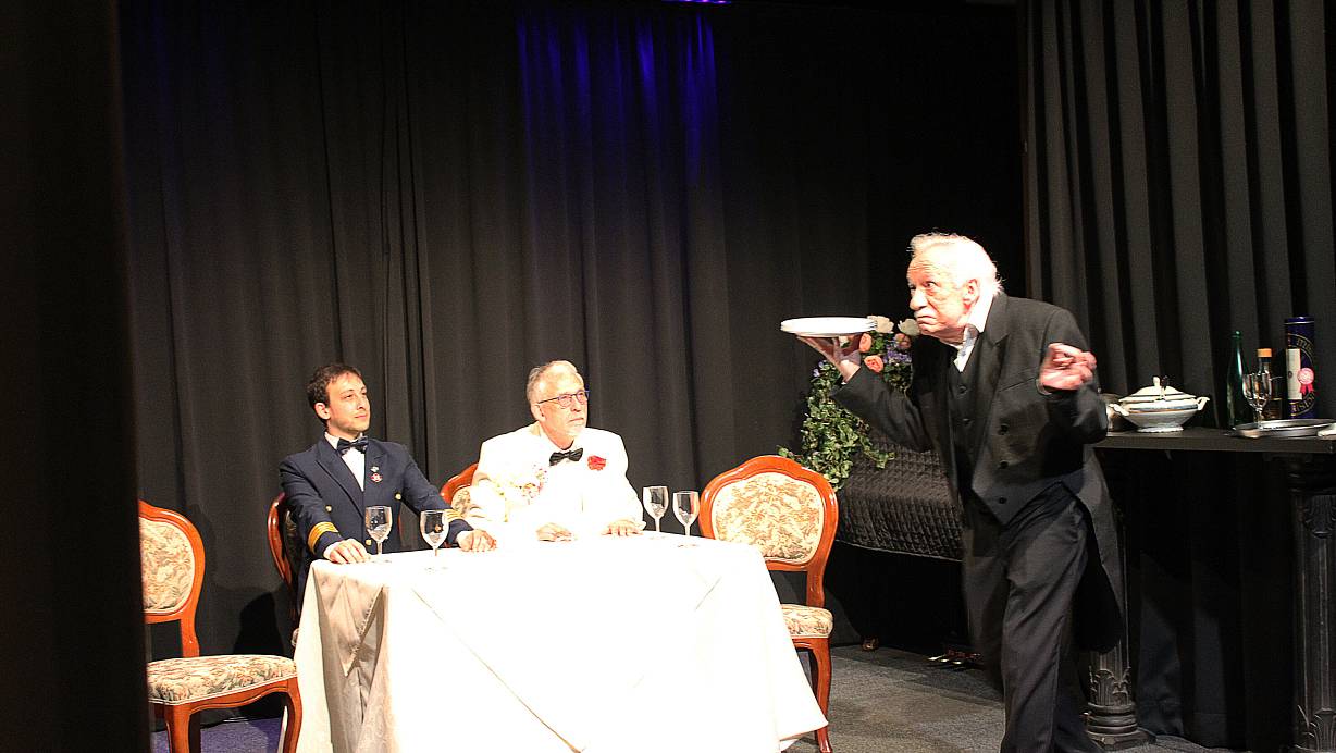 Über allem steht dabei das bis aufs Blut zerstrittene Ex-Ehepaar May Warden und Freddie Frinton, dargestellt von Susanne Voß und Manfred Schlaffer. Sie lassen nichts unversucht, um an der Silvestervorstellung nicht gemeinsam als „Butler James“ und „Miss Sophie“ auf der Bühne stehen zu müssen.