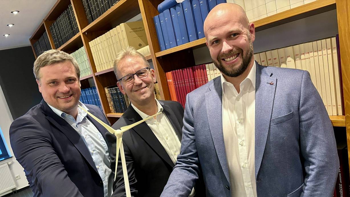 Den Windenergie-Ausbau in die Hand nehmen (v. l.) Jan Lackmann (LSF), Jürgen Noch (Westfalen Weser) und Alexander Möring (LSF). | © Jens Reddeker