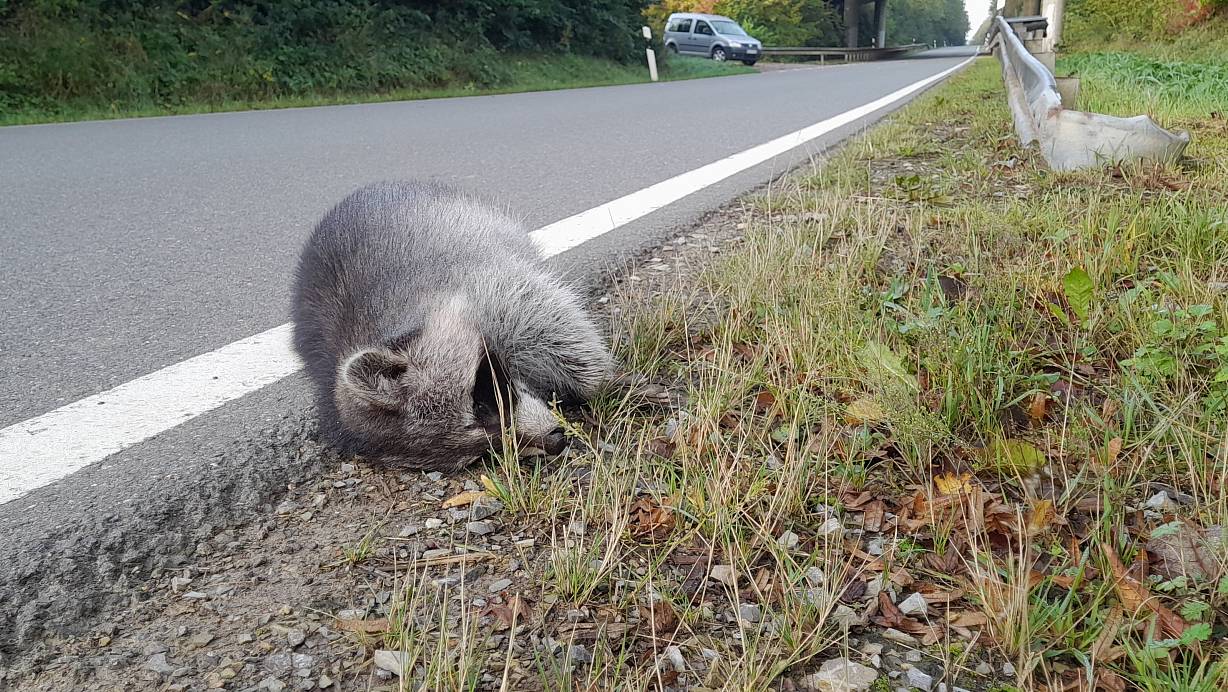Wildunfälle, wie hier mit einem Waschbären an einer Landesstraße im Kreis Paderborn, kommen besonders im April und November häufiger vor. | © Uwe Müller