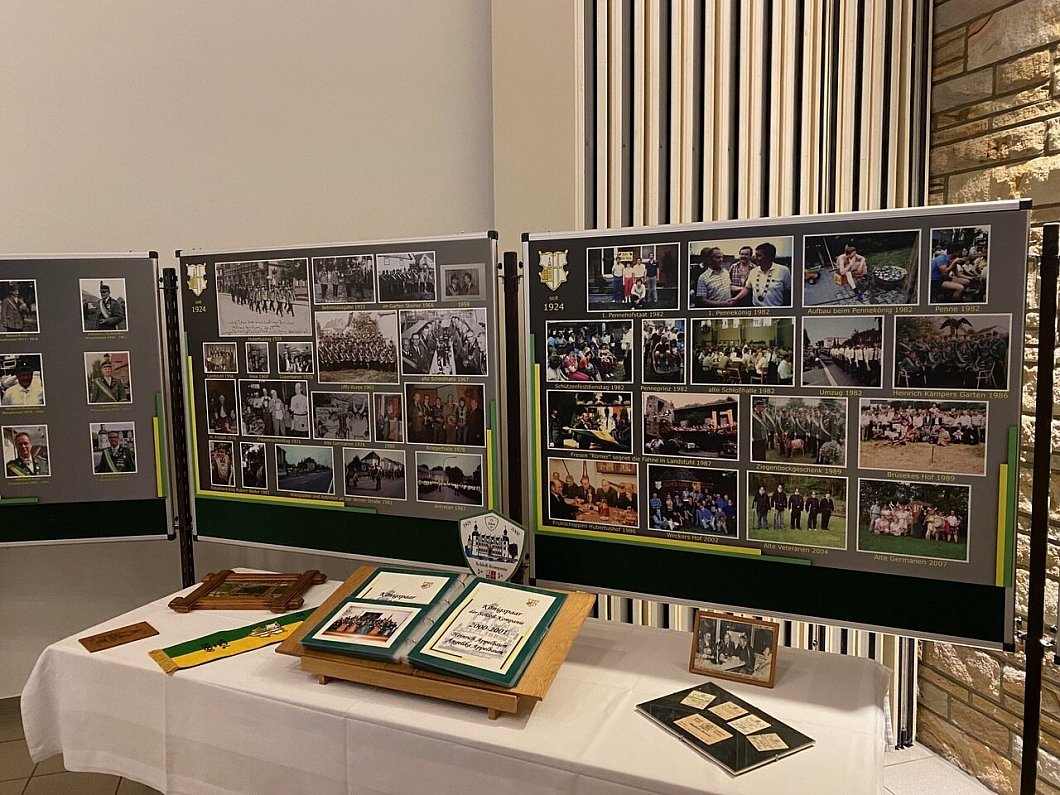 Paderborn-Schloß Neuhaus. Vollständig ausgebucht, geschmückt in den Ortsfarben grün und gelb sowie mit fulminantem Rahmenprogramm präsentierte sich die Neuhäuser Schlosshalle. Rund 400 Gäste und Mitglieder hatten sich eingefunden, um das Jubiläum zum 100-jährigen Bestehen der Schloß-Kompanie des Bürger-Schützen-Vereins Schloß Neuhaus zu feiern.Arbeitsgruppen hatten dazu in monatelanger Vorbereitung den Abend geplant. So beleuchteten Exponate und Bilder für die Besucher die Zeit der ersten Hauptleute August Hunstiger (1924-1932) und Daniel Koch (1932-1939), über den Wiederaufbau unter Johannes Gaßmüller (1948-1963), die Schützenjahre um die deutsche Wiedervereinigung mit Walter Brüseke (1984-1992) sowie Aktionen der aktuellen Vorstände unter Winfried Kurte (2001-2016) sowie Raimond Leiwen (seit 2016).