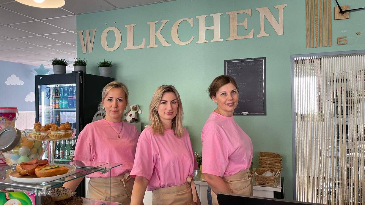 Natali Goloschewski (v.l.), Katharina Aslan und Natalya Schlej freuen sich, dass ihr Café in Bad Lippspringe gut angenommen wird. | © Jule Prietzel