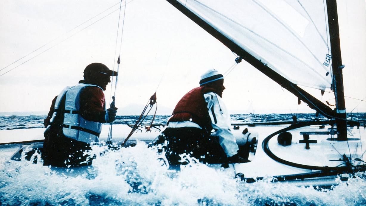 Der 1986 verstorbene Paderborner Computerunternehmer Heinz Nixdorf (l.) und sein Vorschoter Josef Pieper haben in der Starboot-Klasse an 16 Weltmeisterschaften teilgenommen. | © HNF-Archiv